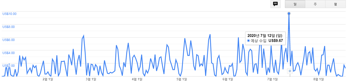 어느 순간부터 하루에 1달러는 기본으로 찍히기 시작했고, 최고로 많이 찍은 날은 $9.67가 들어오기도 했다. 호호