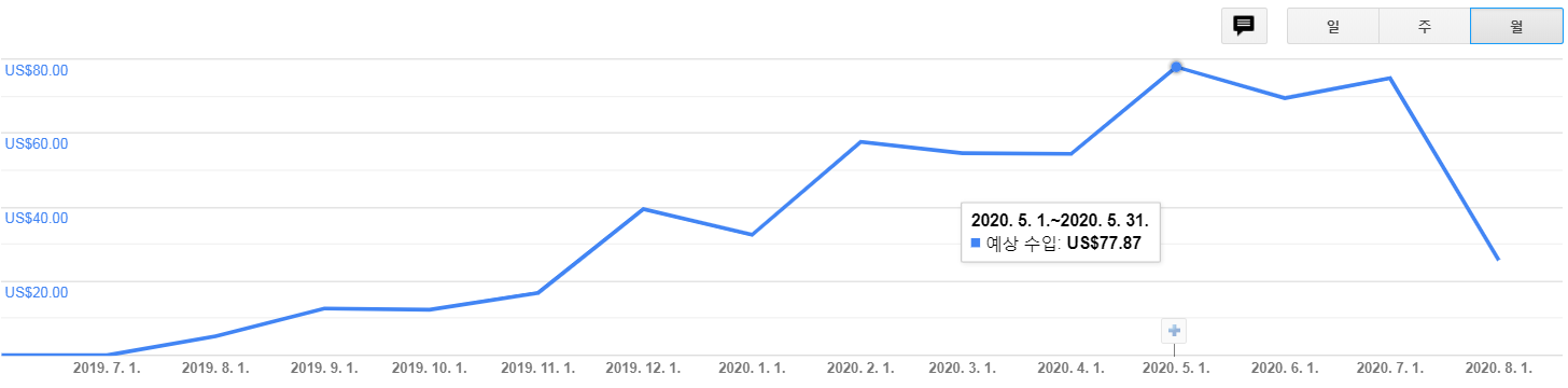 그리하여 1년동안 애드센스로 번 돈은 총 $533이다. 한국 돈으로 하면 약 62만원. 애드포스트보다 확실히 낫고 우상향한다는 점이 희망적이다.