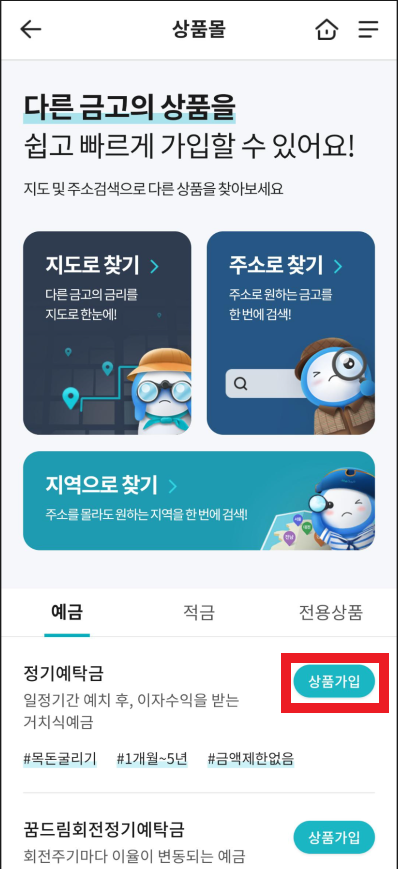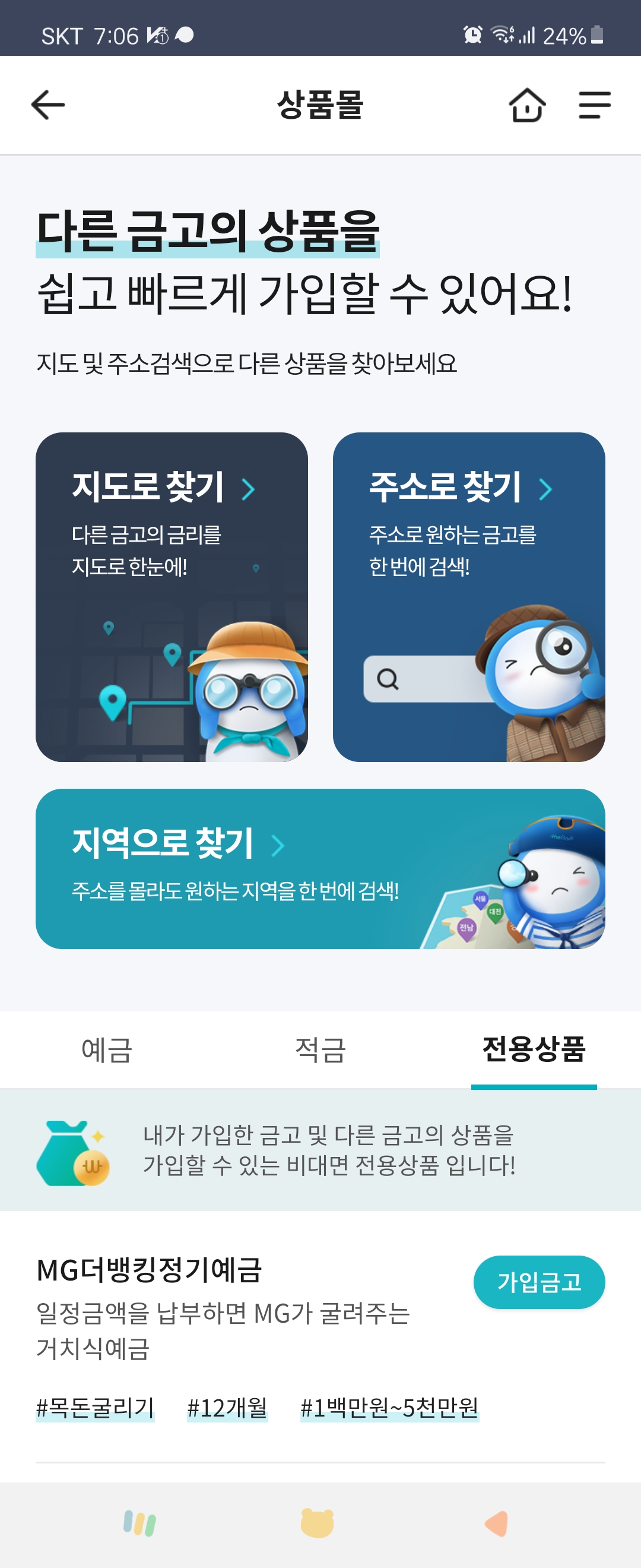 MG더뱅킹 > 메뉴 > 예적금 > 예적금상품(신규)
