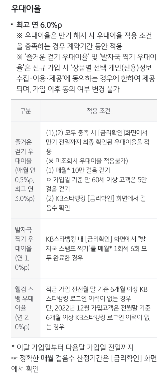 즐거운 걷기 우대이율 (매월 0.5% * 6 = 최고 3%)