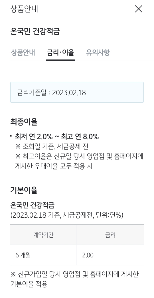보통 6개월짜리는 금리가 높아도 실질적으로 절반만 적용이 되니까 잘 가입안하는 편이긴 한데 이벤트 참여 겸, 빡세게 근검절약 생활 할 겸 해서 가입해보았다.