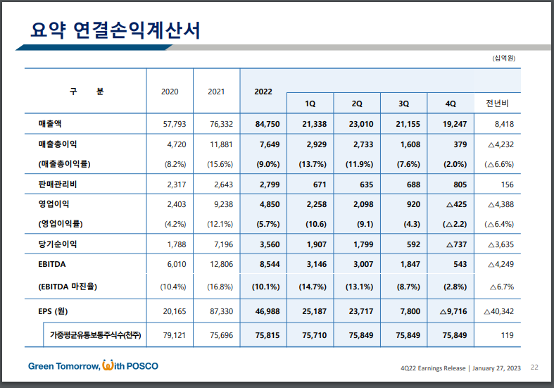 포스코홀딩스 주요지표 및 재무