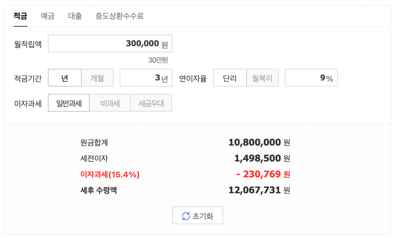 나는 해당 안되지만 만약 9%까지 우대금리를 받을 시에는, 126만 7731원이다.