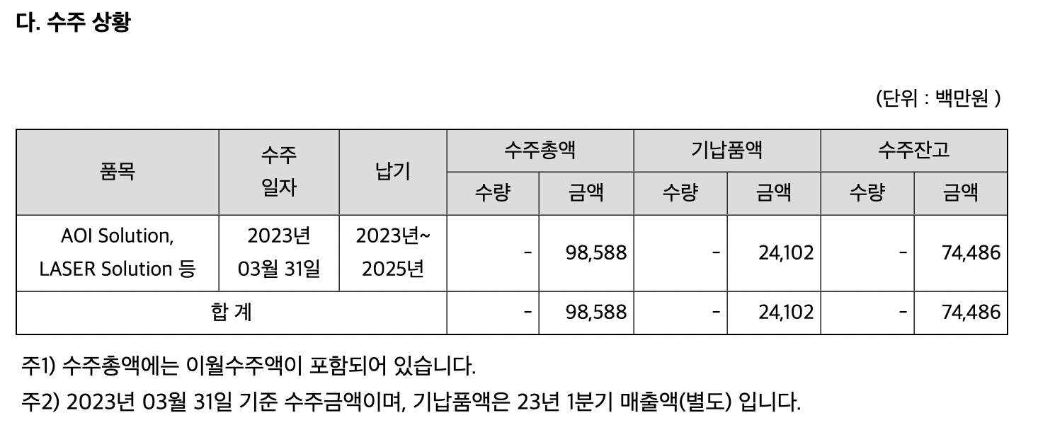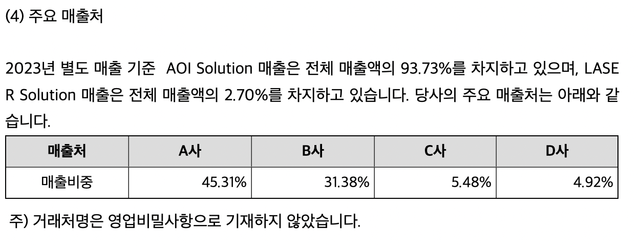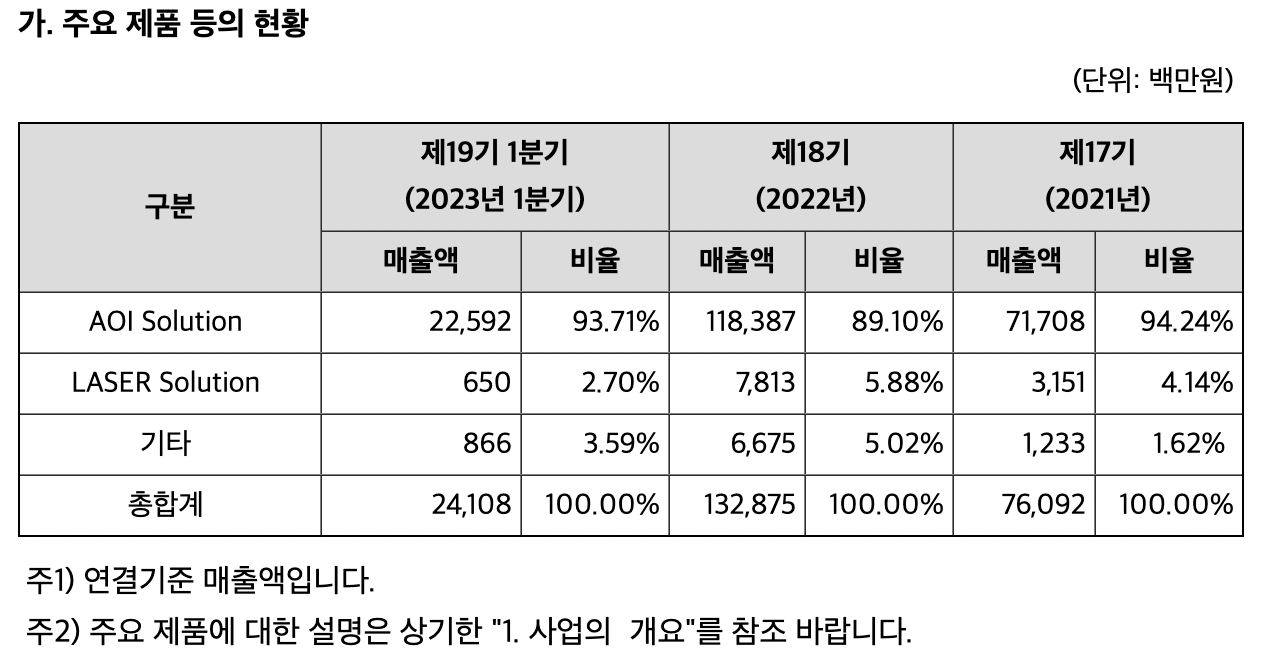 레이저 솔루션 부문을 보고 투자했는데 차지하는 비중이 ~5% 수준
