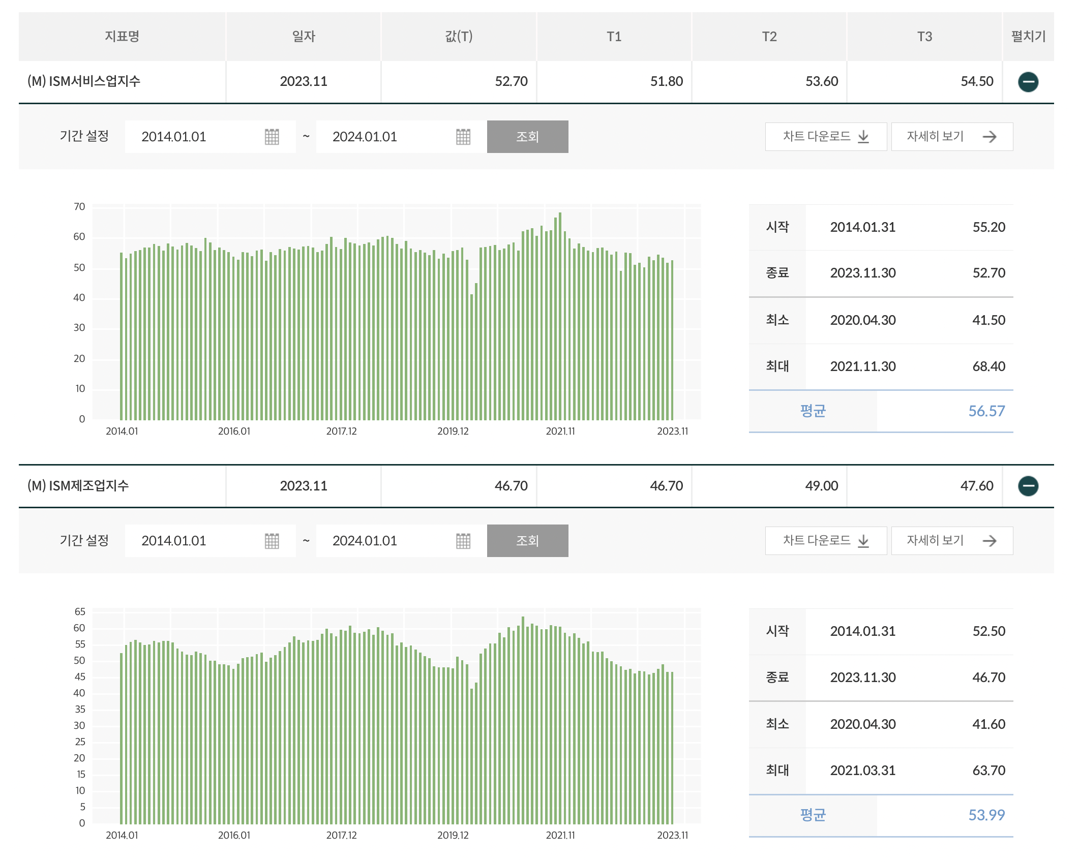 - 50 이상이면 경기 확장, 50 이하면 수축을 예고