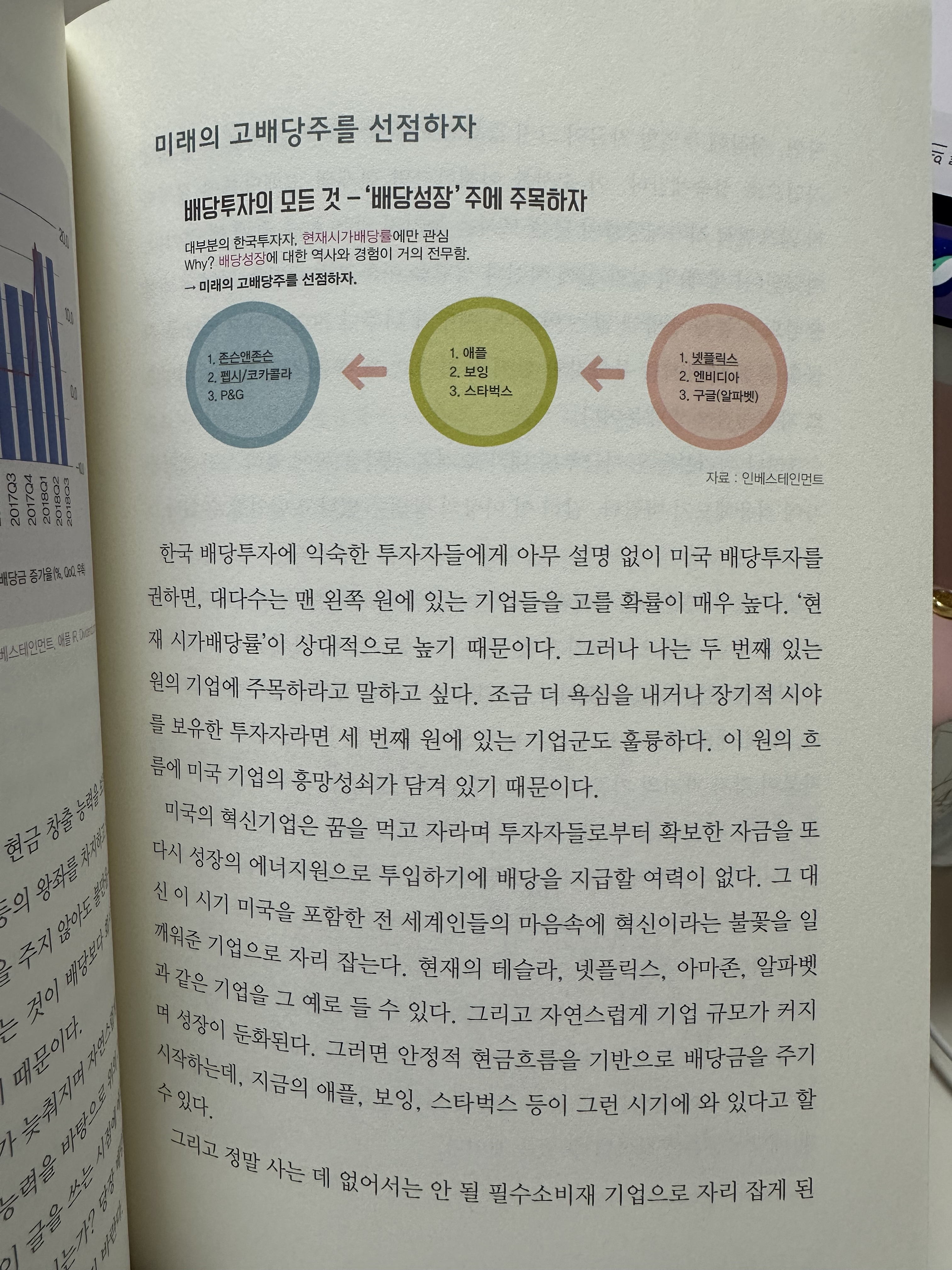 전통적인 배당주 뿐만 아니라, 우리가 지금 기술주로 알고 있는 테슬라, 넷플릭스, 아마존 등도 배당주가 될 수 있다는 것이 관점의 전환이었다. 이 책을 산지가 벌써 5년은 된 것 같은데 그 때 이부분을 읽고 엔비디아를 샀더라면..!
