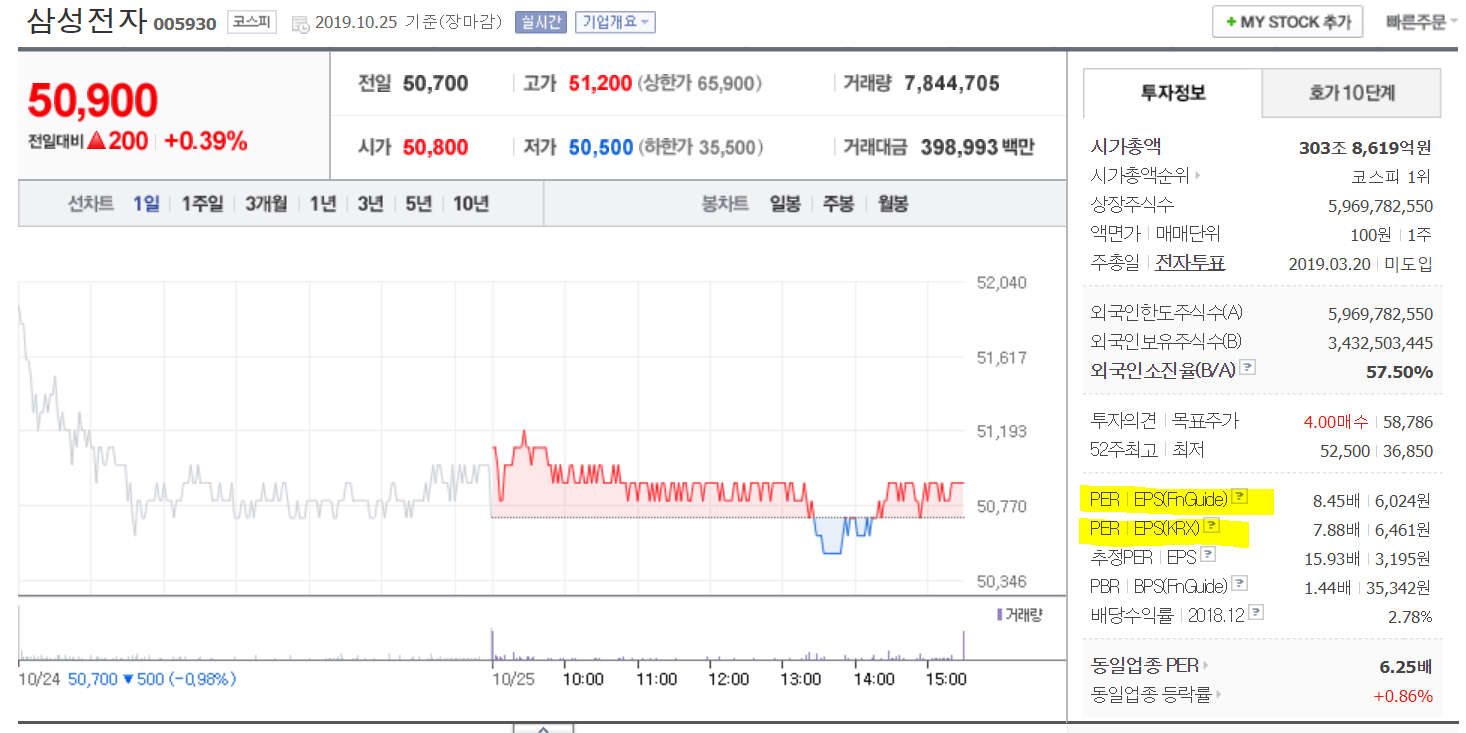 삼성전자의 PER은 FnGuide 기준 8.45배다. (* FnGuide : 보통주 + 우선주 / KRX : 보통주)